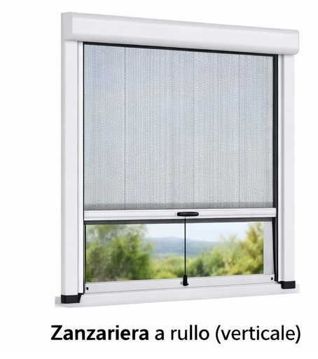 È la soluzione più diffusa. La rete si avvolge in un cassonetto e scorre su guide.