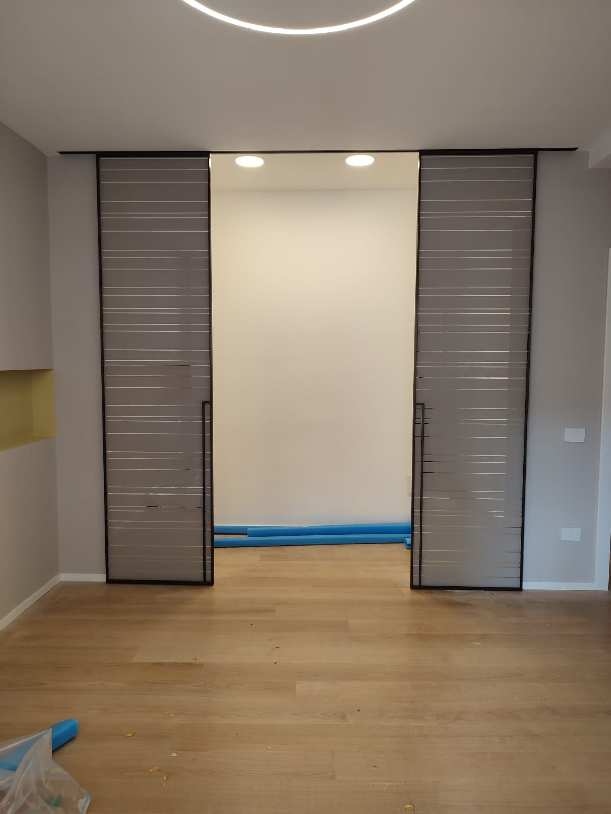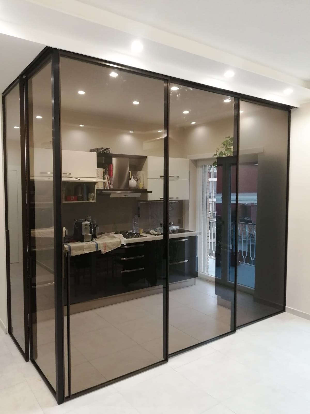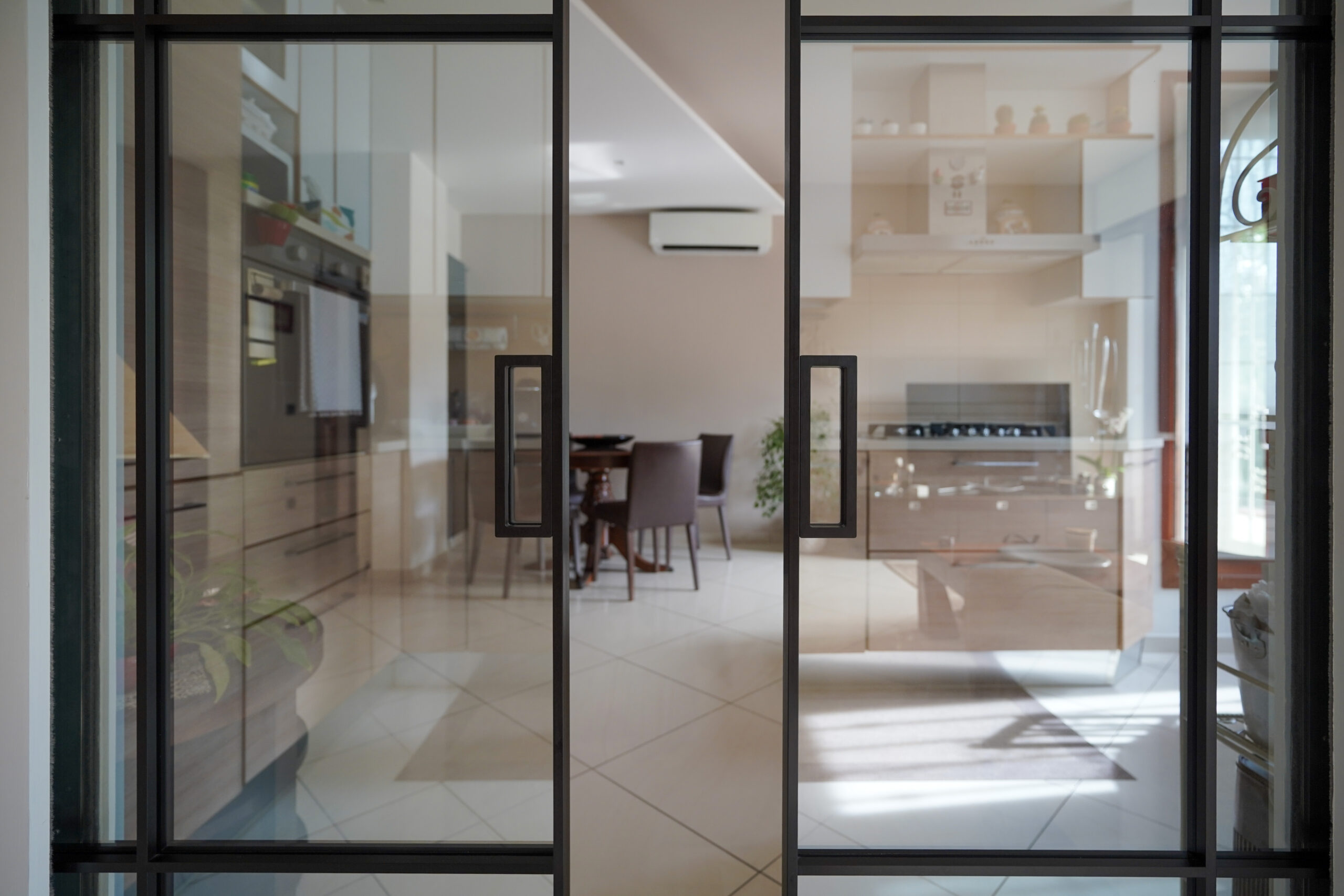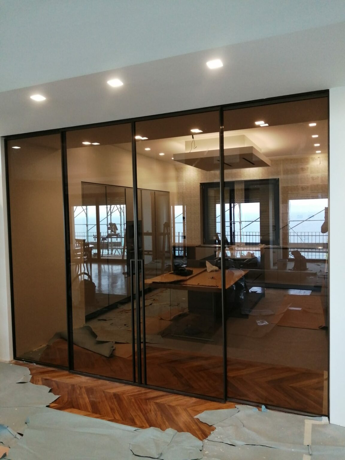 Le porte e pareti vetrate sono elementi distintivi che valorizzano gli ambienti conferendo loro un’atmosfera luminosa e sofisticata.