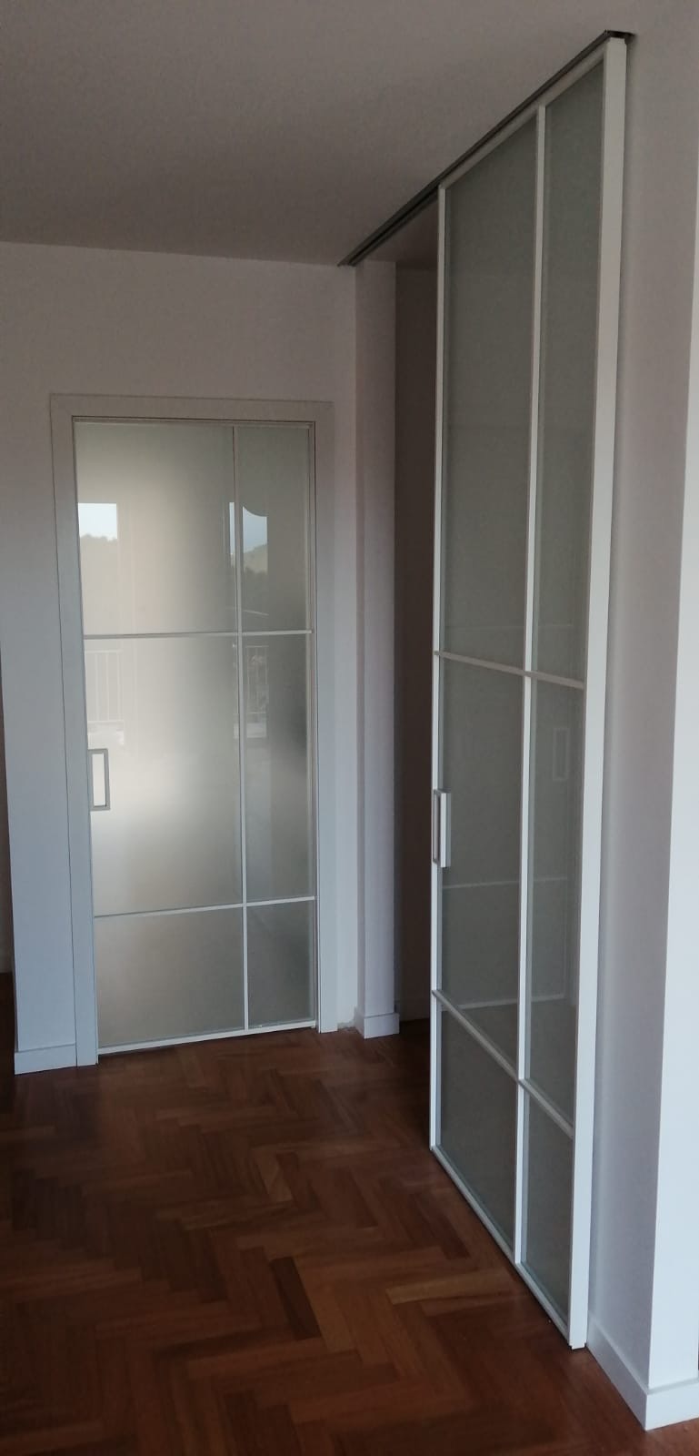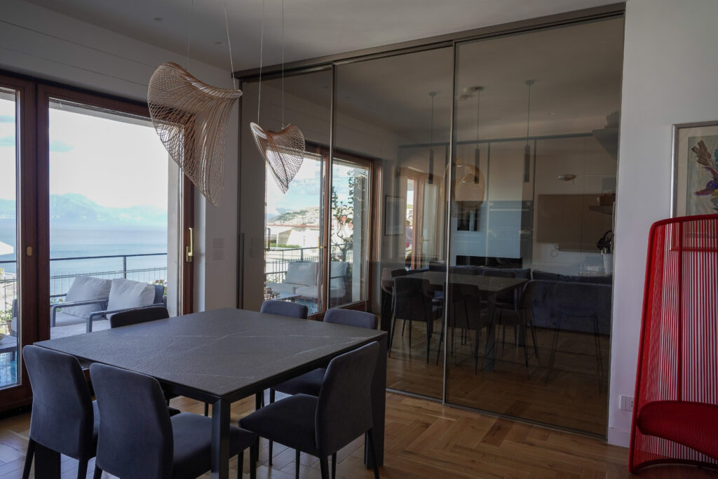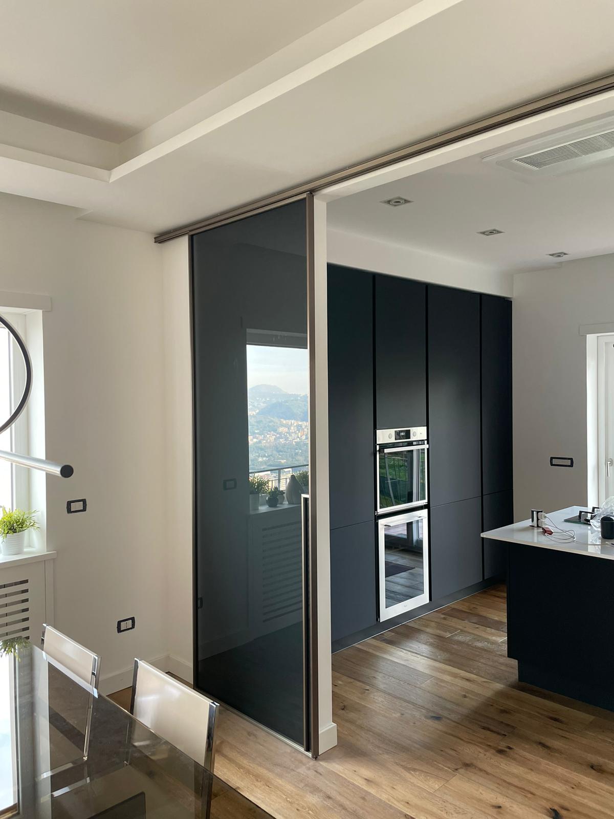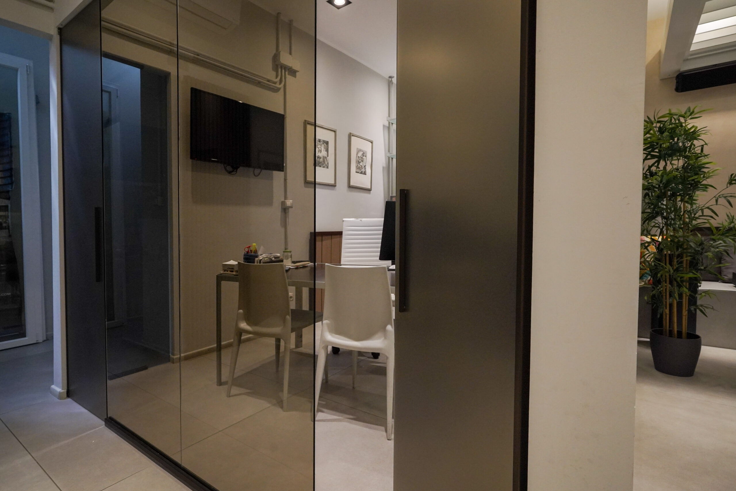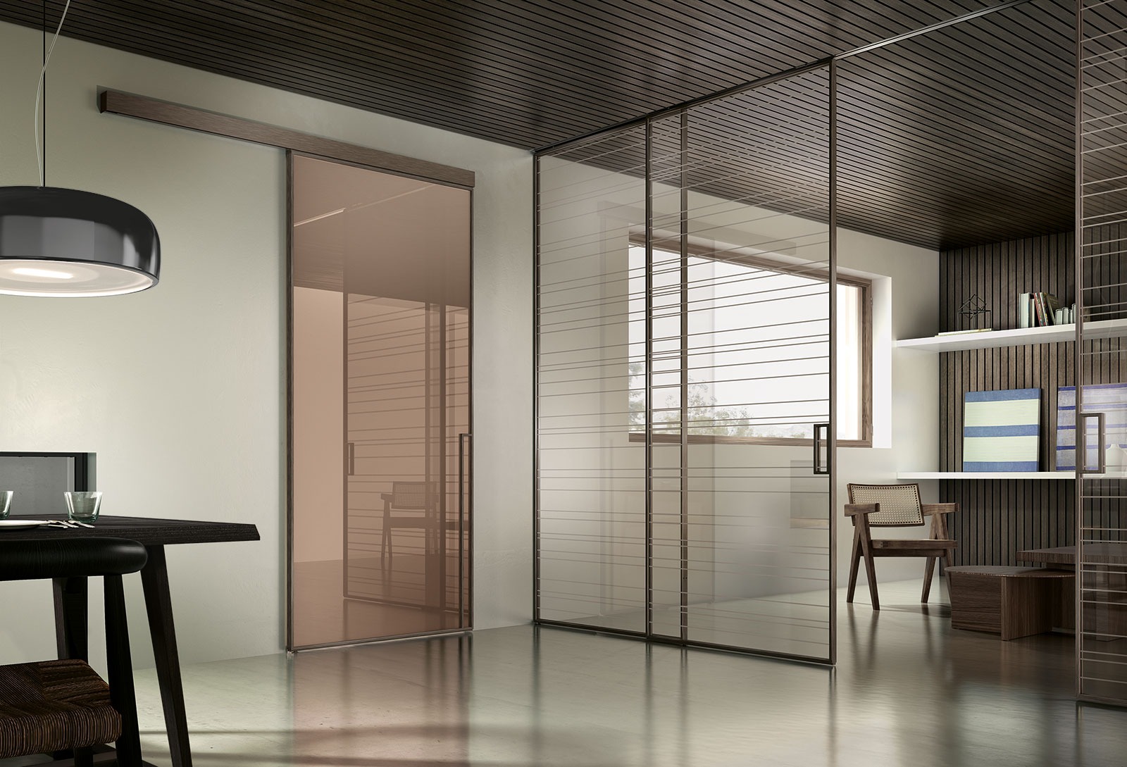 Le porte e pareti vetrate sono elementi distintivi che valorizzano gli ambienti conferendo loro un’atmosfera luminosa e sofisticata.